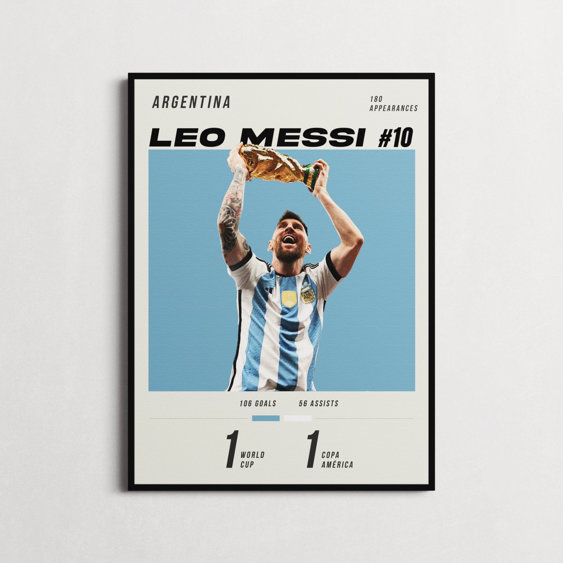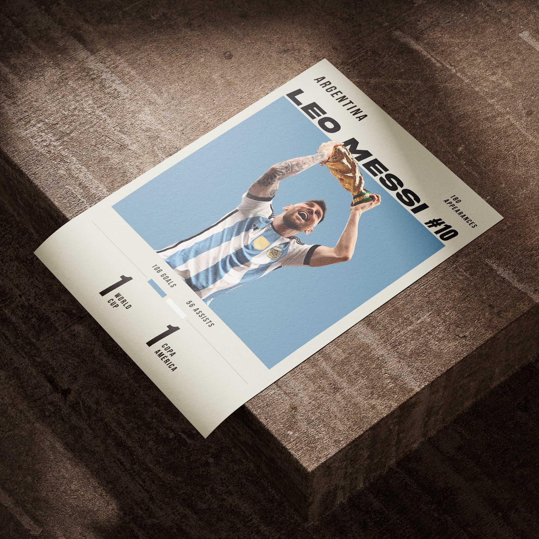 Printed image on 300gsm heavyweight card of Messi